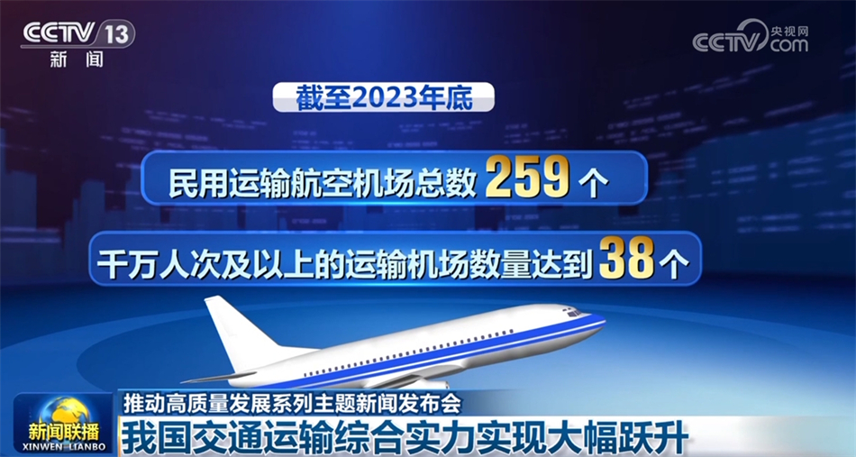 五年來(lái),客貨運(yùn)輸不斷發(fā)展,群眾出行更加舒適便捷,貨物運(yùn)輸更加順暢高效。截至2023年底,我國(guó)鐵路營(yíng)業(yè)里程15.9萬(wàn)公里,其中高鐵營(yíng)業(yè)里程4.5萬(wàn)公里;全國(guó)公路里程543.68萬(wàn)公里,其中高速公路里程18.36萬(wàn)公里;民用運(yùn)輸航空機(jī)場(chǎng)總數(shù)259個(gè),千萬(wàn)人次及以上的運(yùn)輸機(jī)場(chǎng)數(shù)量達(dá)到38個(gè)。
