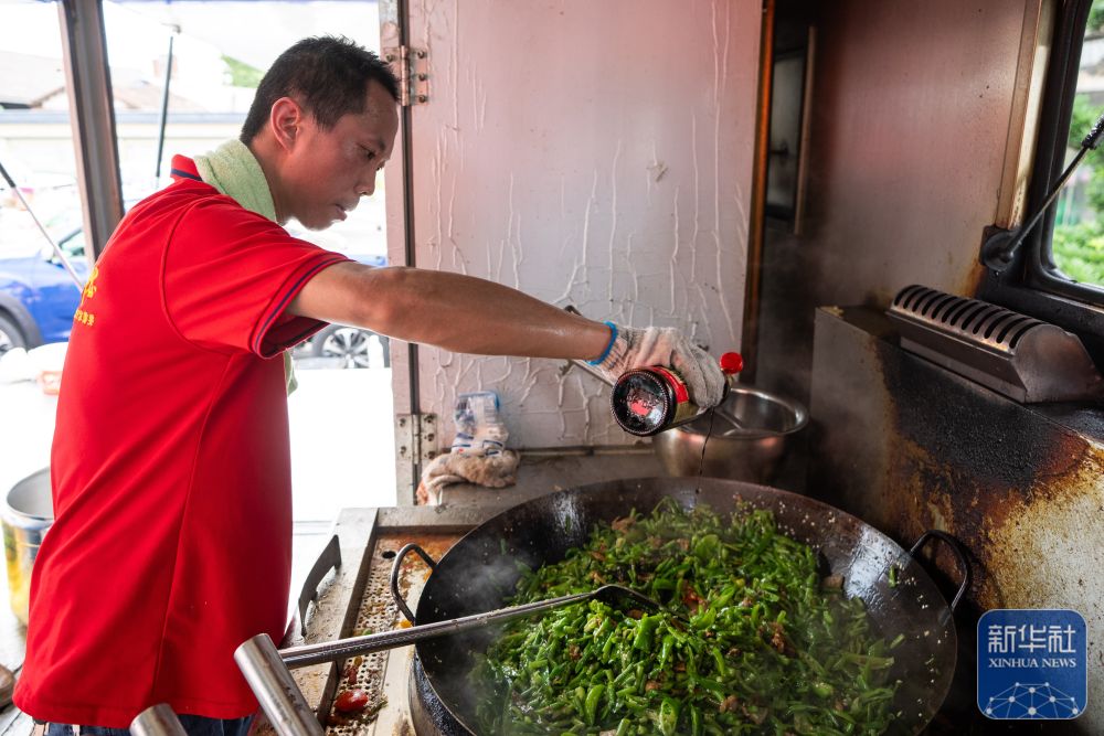 7月10日,在岳陽市良心堡鎮(zhèn)望君洲村,志愿者在炒制菜肴。新華社記者 陳思汗 攝