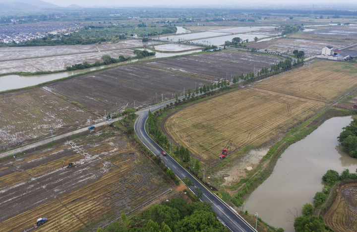 在浙江省諸暨市趙家鎮(zhèn)上京村拍攝的改造提升后的縣道(2024年6月4日攝,無人機(jī)照片)。新華社記者 徐昱 攝