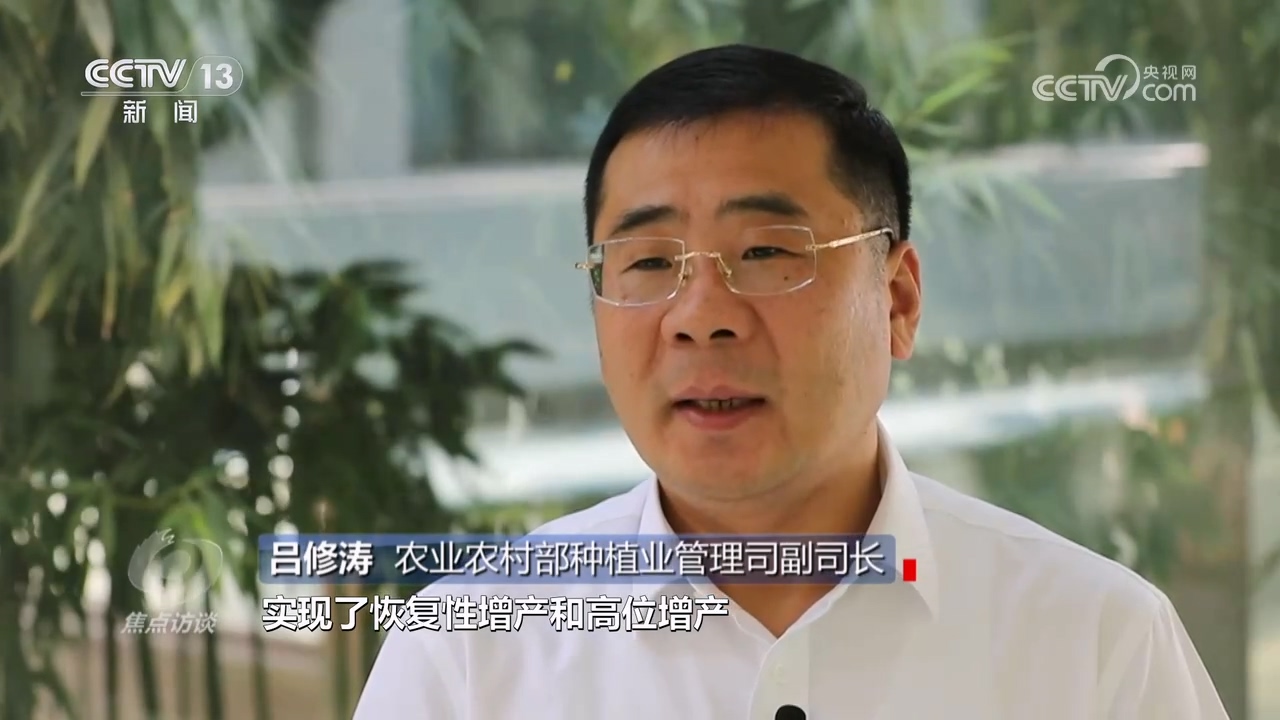 農(nóng)業(yè)農(nóng)村部種植業(yè)管理司副司長呂修濤:“今年的“三夏”生產(chǎn)可以用“過五關(guān)斬六將”來形容,克服了一系列風(fēng)險(xiǎn)和挑戰(zhàn),實(shí)現(xiàn)了恢復(fù)性增產(chǎn)和高位增產(chǎn),這是今年夏糧一個(gè)非常突出的成果?!?/p>