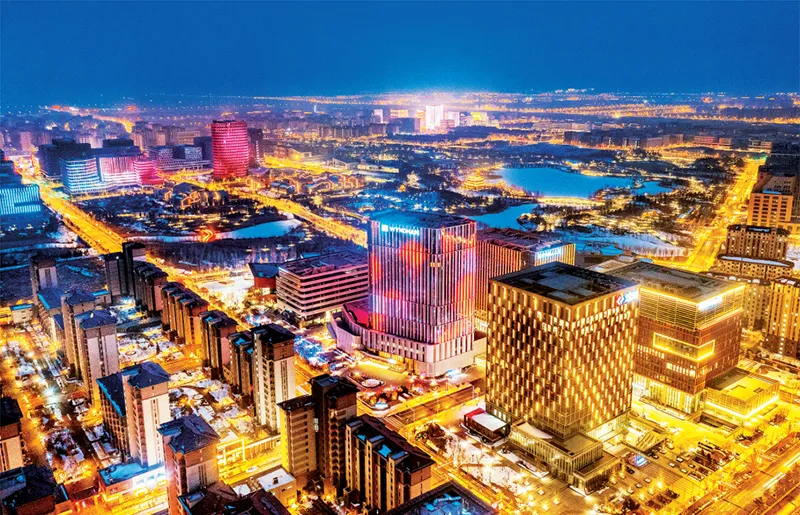 設(shè)立雄安新區(qū),是以習(xí)近平同志為核心的黨中央高舉新時代改革開放旗幟作出的重大戰(zhàn)略舉措。圖為2024年2月7日雄安新區(qū)容東片區(qū)夜晚景象。雄安新區(qū)宣傳網(wǎng)信局供圖 李達(dá)/攝