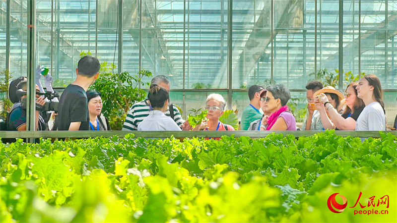在新疆昌吉農(nóng)業(yè)博覽園,中外漢學家、翻譯家、作家參觀新疆現(xiàn)代農(nóng)業(yè)種植情況。人民網(wǎng) 李欣洋攝