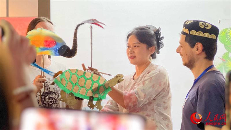 “這是我第一次來新疆,在來之前我很喜歡《吐魯番的葡萄熟了》這首歌,也對新疆充滿了好奇?!痹诓菝佬g館,俄羅斯翻譯家、現(xiàn)任莫斯科物理技術學院中文系副教授羅子毅在皮影戲展示區(qū)駐足觀看并親身體驗了皮影戲的基本技巧?!拔覍W過表演,也很喜歡歌劇,這趟新疆之行剛開始就能體驗到中國的皮影戲,我對后面的行程充滿了期待?!?/p>