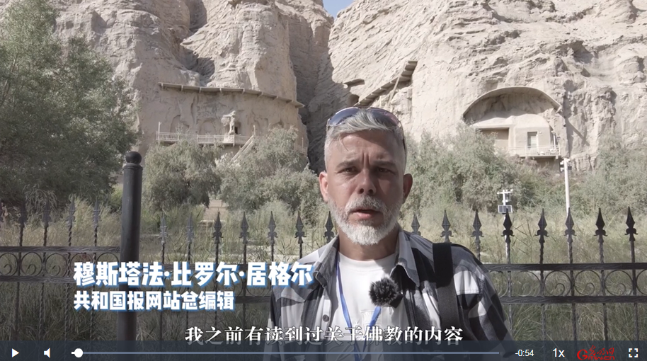 共和國報網(wǎng)站總編輯穆斯塔法·比羅爾·居格爾說,這是他第一次參觀佛教相關(guān)場所,中國政府對石窟的保護使人們得以見證千年前的歷史,并了解那時的人們的宗教信仰與處事哲學(xué)。他指出:“這是一種文化傳承。我們應(yīng)當延續(xù)和保護這些文化,并向后代講述那段故事?!?strong>(光明網(wǎng)記者 張安迪)