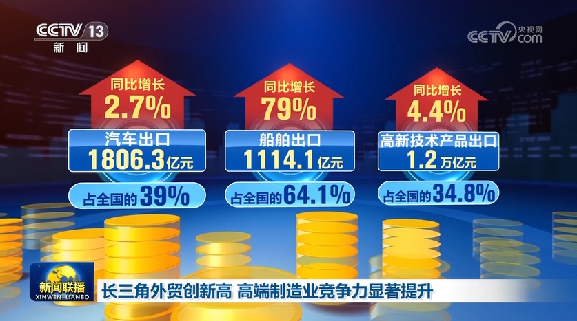 海關最新數(shù)據顯示,今年前7個月,長三角地區(qū)進出口規(guī)模創(chuàng)歷史新高,汽車、船舶、數(shù)控機床等產品出口亮眼,長三角地區(qū)高端制造業(yè)國際競爭力加速提升。