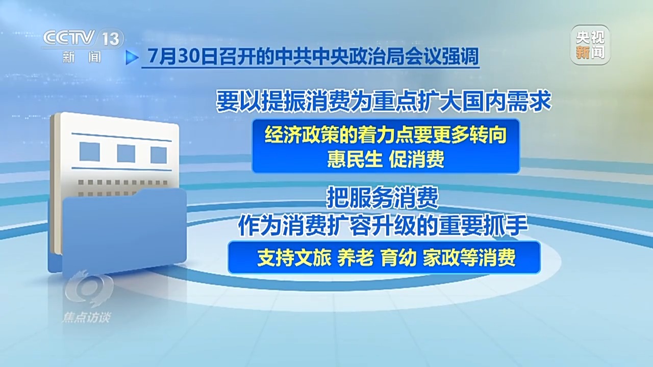 服務消費是釋放消費潛力的重要力量。7月30日召開的中共中央政治局會議強調(diào),“要以提振消費為重點擴大國內(nèi)需求,經(jīng)濟政策的著力點要更多轉(zhuǎn)向惠民生、促消費,把服務消費作為消費擴容升級的重要抓手,支持文旅、養(yǎng)老、育幼、家政等消費。”國務院于8月3日印發(fā)《關(guān)于促進服務消費高質(zhì)量發(fā)展的意見》,提出“著力提升服務品質(zhì)、豐富消費場景、優(yōu)化消費環(huán)境,以創(chuàng)新激發(fā)服務消費內(nèi)生動能,培育服務消費新增長點”。這是我國首次專門就服務消費發(fā)展作出系統(tǒng)全面部署的政策文件。