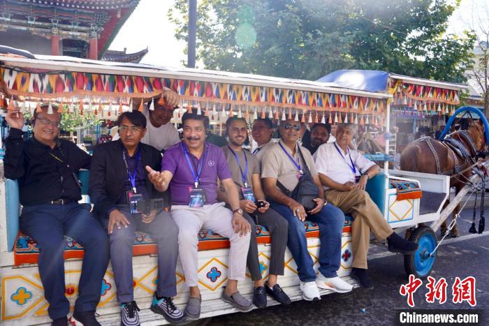 22日,巴基斯坦媒體人乘坐街區(qū)特色的電驅(qū)動(dòng)馬車,參觀游覽民族風(fēng)情街。陳欣怡 攝