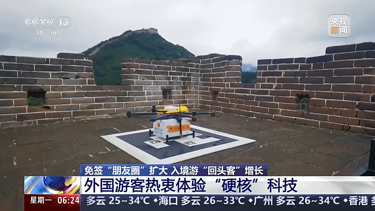 北京八達嶺長城近期開通了無人機“送外賣”服務(wù),最快5分鐘,來自山下的酸梅湯、雪糕、創(chuàng)可貼等商品就能送到長城上來。