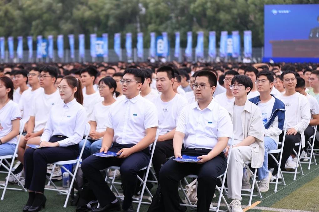 吉林大學(xué)2024屆新生在開學(xué)典禮上。