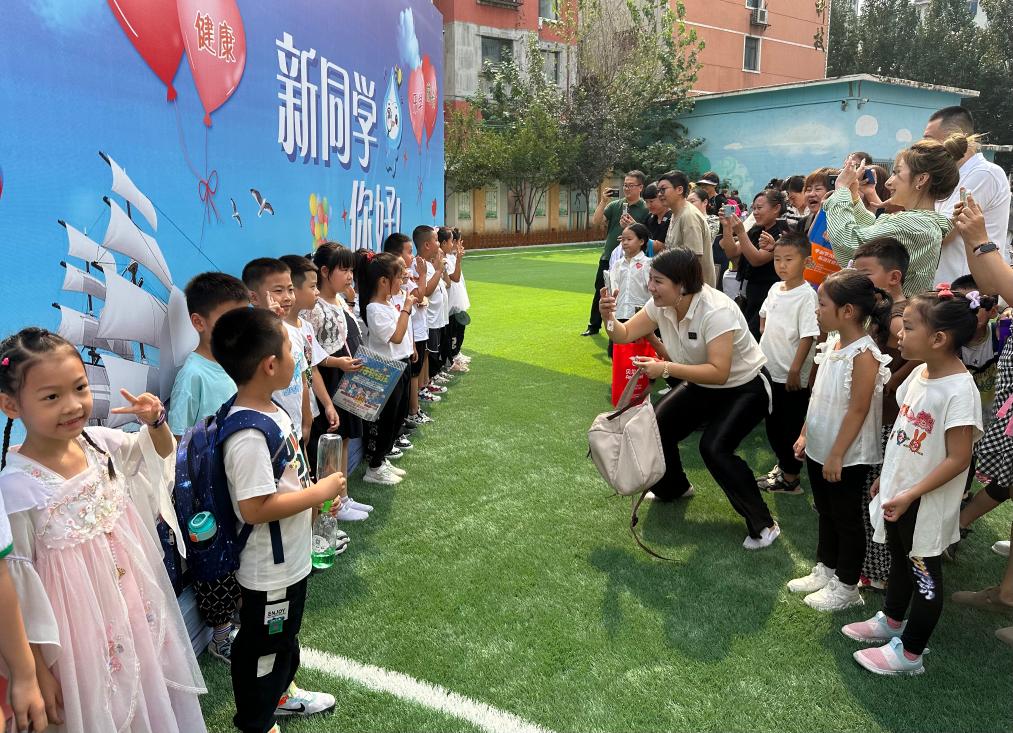 在沈陽市珠江五校教育集團怒江校區(qū),千余名小學(xué)一年級新生來校報到?!靶峦瑢W(xué)你好”的巨型展板下,孩子們展露笑臉、拍照留念,準備邁入人生的嶄新階段。