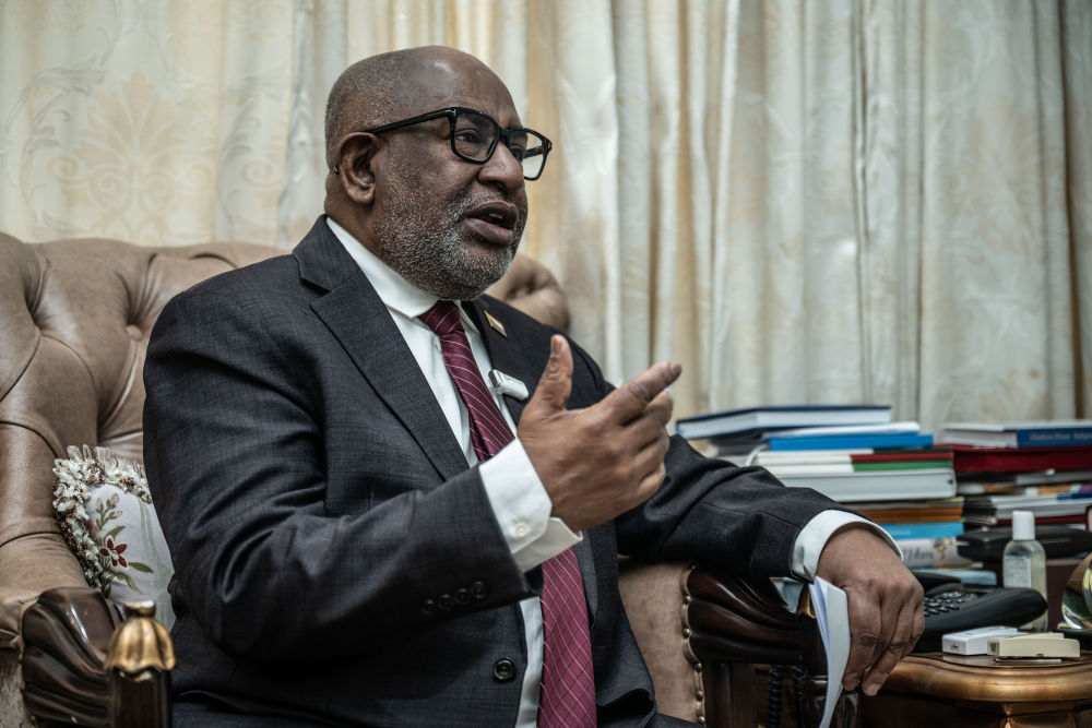 圖為8月29日,科摩羅總統(tǒng)阿扎利在位于科摩羅首都莫羅尼的總統(tǒng)府接受新華社記者專訪。(新華社記者王冠森攝)