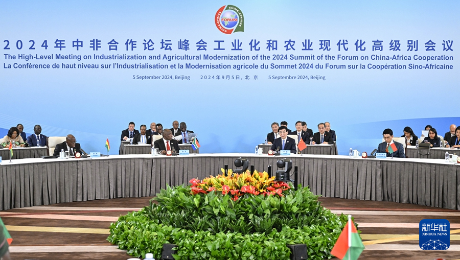 新華社北京9月5日電(記者謝?,帯⑴藵崳┲蟹呛献髡搲本┓鍟I(yè)化和農(nóng)業(yè)現(xiàn)代化高級別會議9月5日下午在國家會議中心舉行。中共中央政治局常委、全國政協(xié)主席王滬寧與南非總統(tǒng)拉馬福薩共同主持會議。