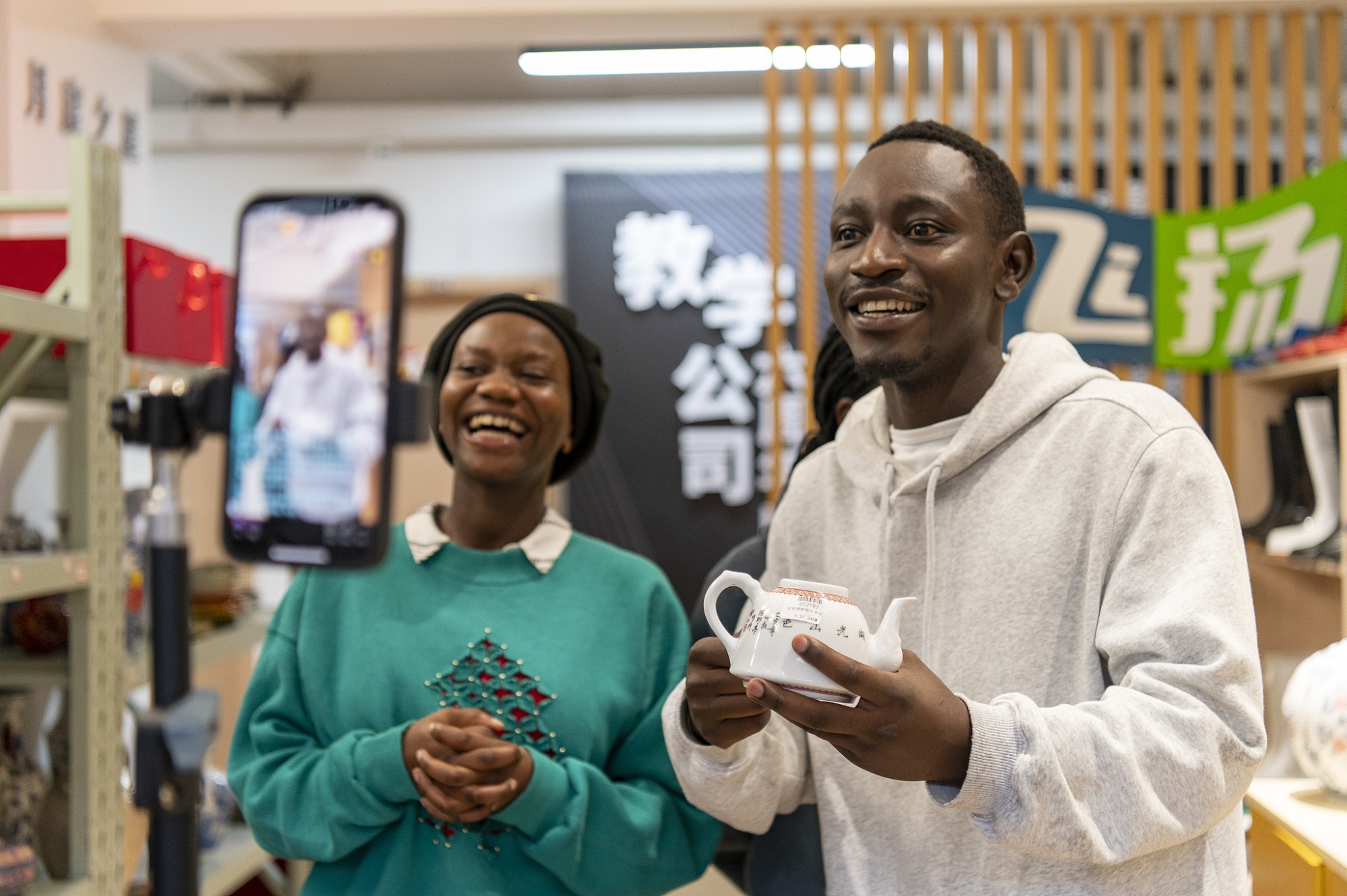 來自盧旺達的非洲留學(xué)生正在認真練習(xí)中文“直播帶貨”