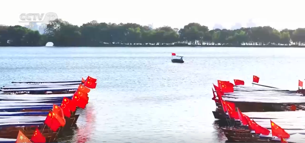 在浙江杭州,西湖上的游船掛起五星紅旗,紅旗與湖水交相輝映,構(gòu)成秋日美麗畫(huà)卷;在云南紅河,建水古城裝飾一新,古色古香的建筑在國(guó)旗映襯下別有韻味;在貴州貴陽(yáng),多處城市地標(biāo)布置了國(guó)慶主題景觀花壇;在江西南昌,國(guó)慶立體花卉造型“祝福祖國(guó)繁榮昌盛”亮相八一廣場(chǎng),花卉造型由約5萬(wàn)盆鮮花搭配組成,融入中國(guó)結(jié)、華表、飄帶元素,表達(dá)著人們對(duì)祖國(guó)的深深祝福;在安徽合肥,用花卉、水果打造的大型花籃象征著花團(tuán)錦簇、碩果累累,吸引市民打卡拍照。