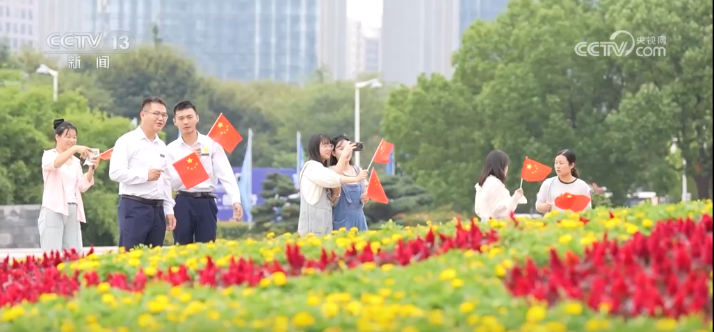 內(nèi)蒙古呼和浩特、鄂爾多斯等地,主干道和重要場(chǎng)所已裝扮一新,一面面鮮艷的五星紅旗飄揚(yáng)在大街小巷。在錫林浩特市,一處鮮紅色的“我和國(guó)旗合個(gè)影”背景板格外引人注目,成為市民們爭(zhēng)相拍照打卡的熱門(mén)“景點(diǎn)”。