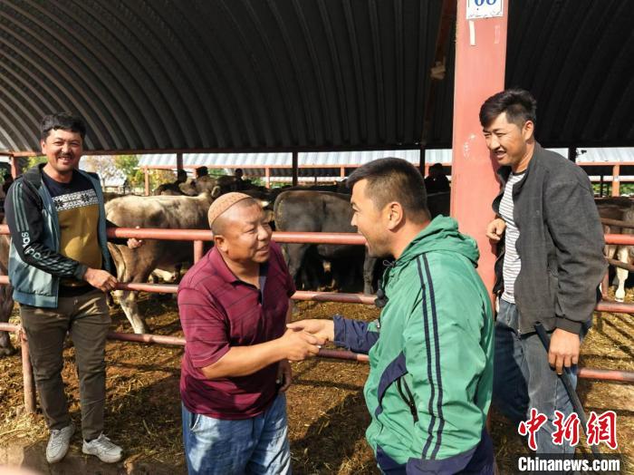 說話間,不時有其他買家、賣家以及“牛羊經(jīng)紀(jì)人”過來與依力夏提·阿不都熱依木打招呼。他介紹道,黃公巴扎有維吾爾族、回族、哈薩克族、漢族等,大家相處融洽。他還邀請一個朋友向記者演示“拍手交易”——雙方用力拍手并握手,用捏手代替口頭報價。