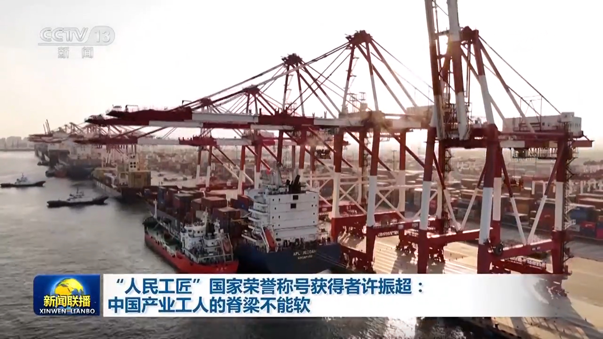 央視網(wǎng)消息(新聞聯(lián)播):他帶領(lǐng)團(tuán)隊九次打破集裝箱裝卸的世界紀(jì)錄,開創(chuàng)了全國聞名的“振超效率”,他就是“人民工匠”國家榮譽(yù)稱號獲得者許振超。