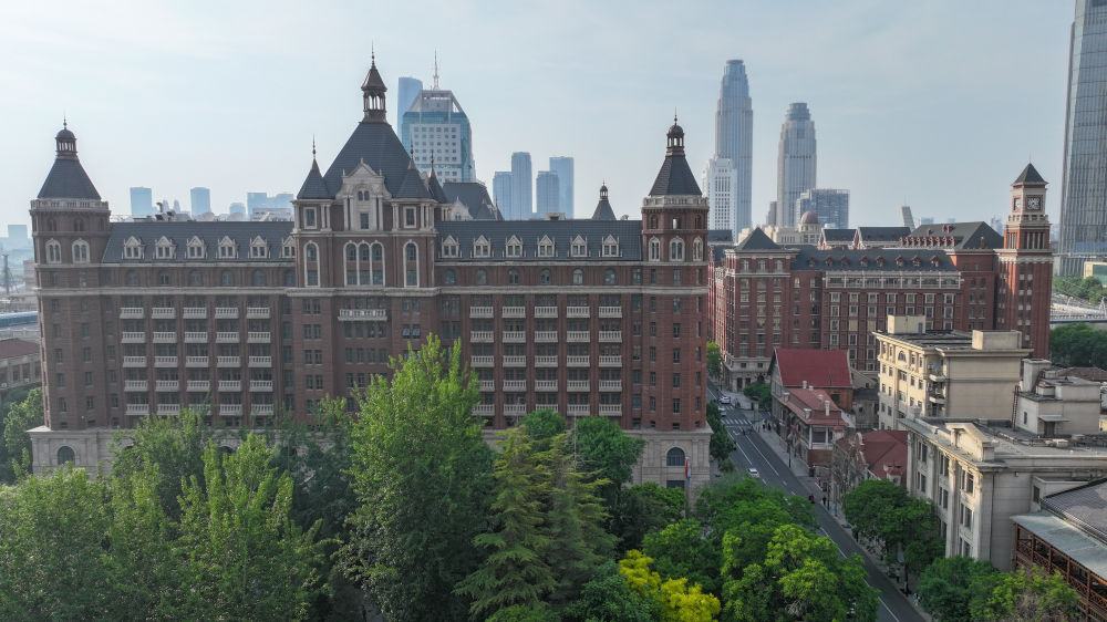 這是無(wú)人機(jī)拍攝的坐落于解放北路歷史文化街區(qū)的一處歐式城堡風(fēng)格建筑。新華社記者 孫凡越 攝