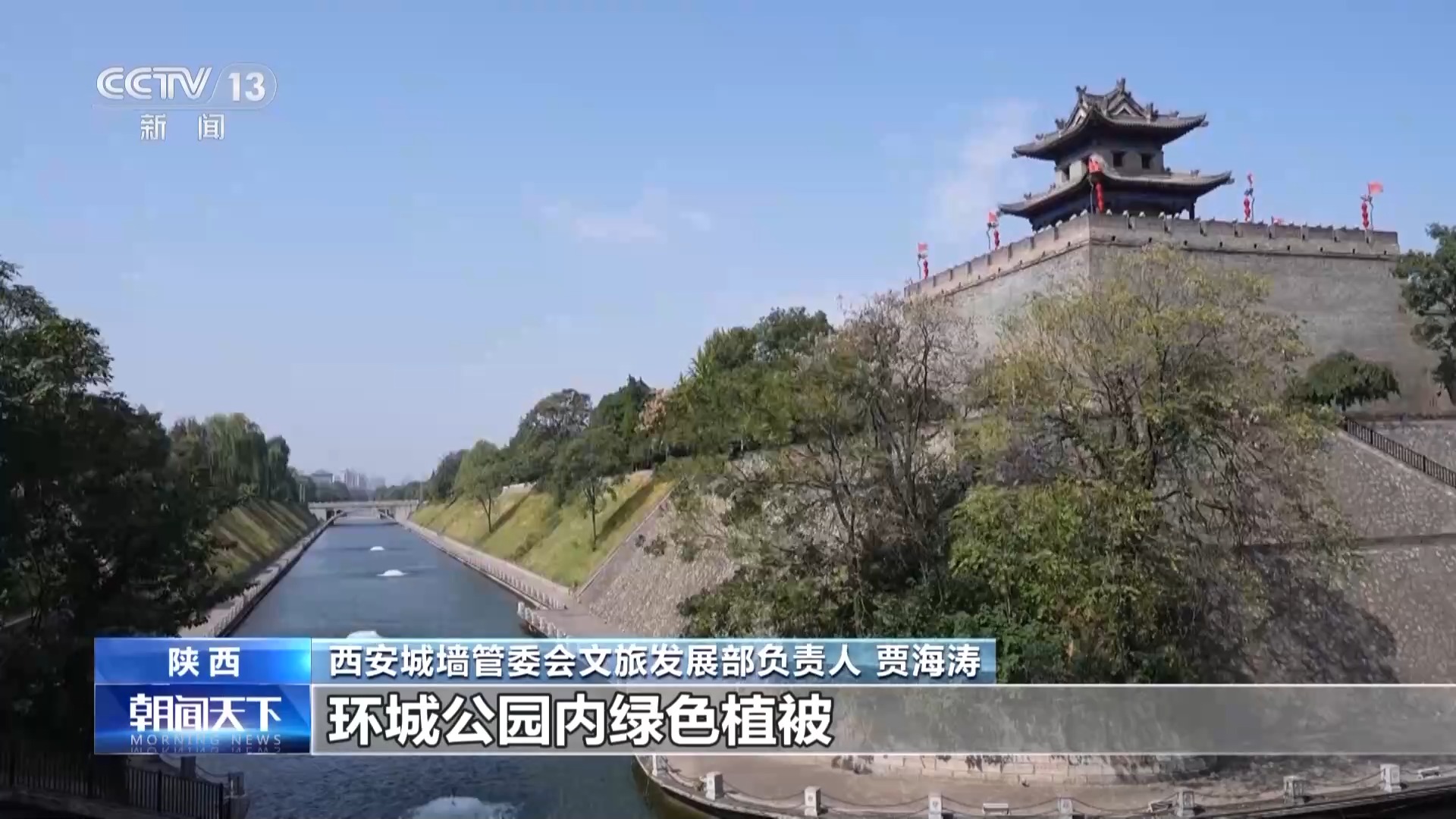 西安城墻管委會文旅發(fā)展部負責人 賈海濤:對護城河水體進行全面修復治理,改善和優(yōu)化水體健康,環(huán)城公園內綠色植被達到了104.5萬平方米,栽植水生植物2000余平方米。