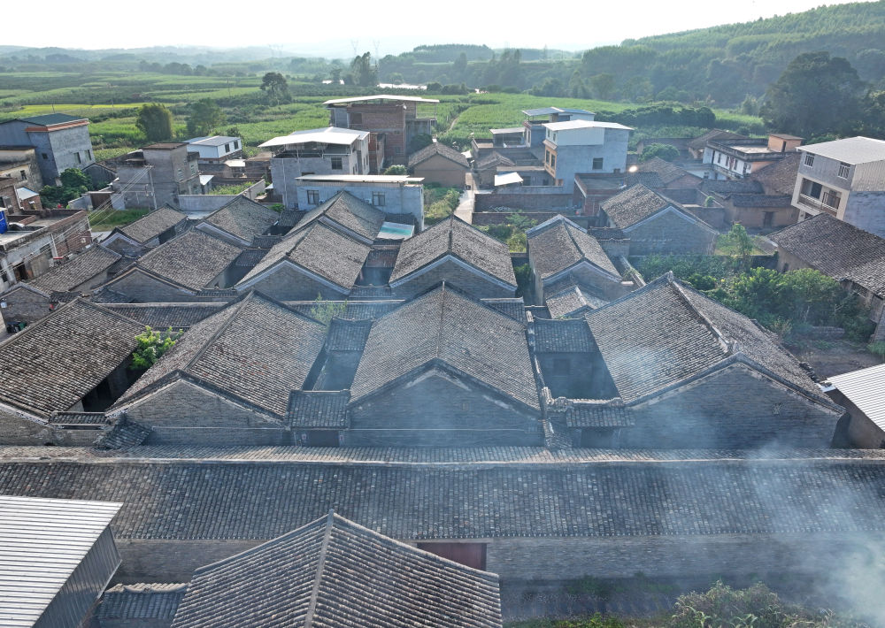 這是炊煙升騰的廣西來賓市象州羅秀鎮(zhèn)納祿村(10月9日攝,無人機照片)。