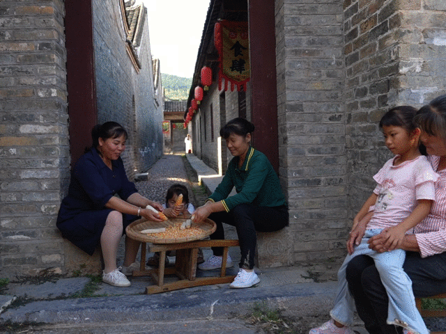 村民在廣西來賓市象州羅秀鎮(zhèn)納祿村剝玉米(10月10日攝)。