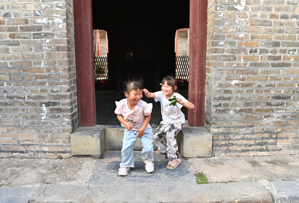 兩名孩子在廣西來賓市象州羅秀鎮(zhèn)納祿村的古宅里玩耍(10月10日攝)。