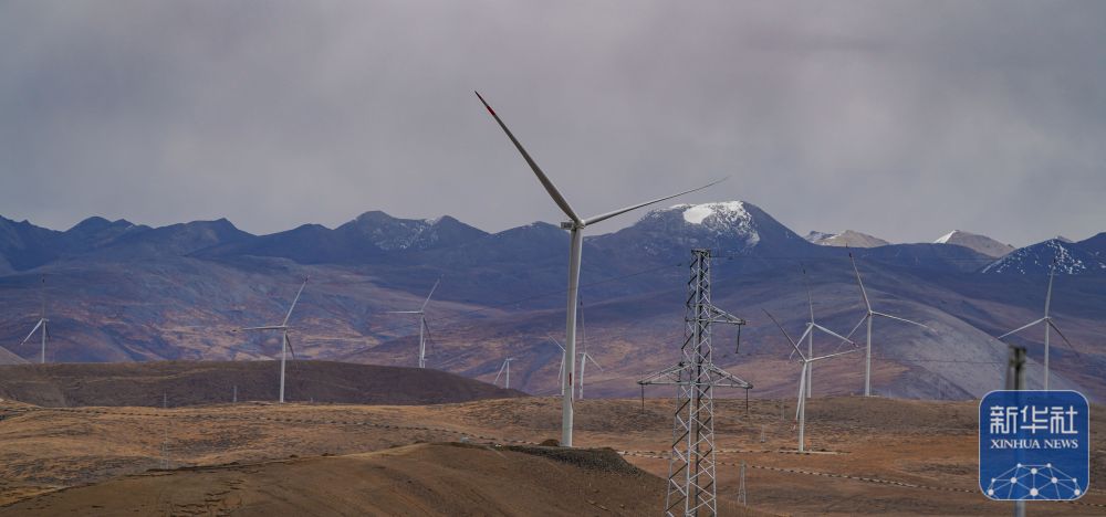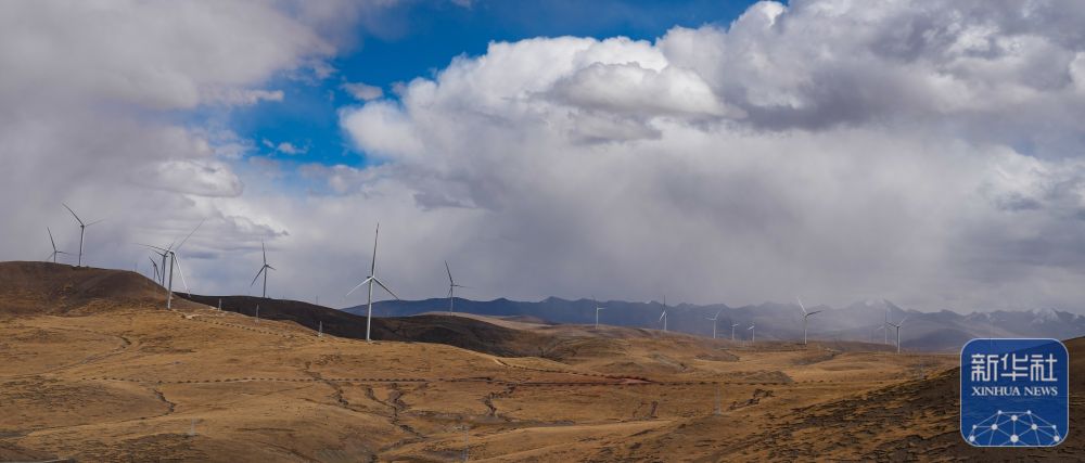 10月17日拍攝的位于西藏日喀則市薩迦縣的風力發(fā)電機組。