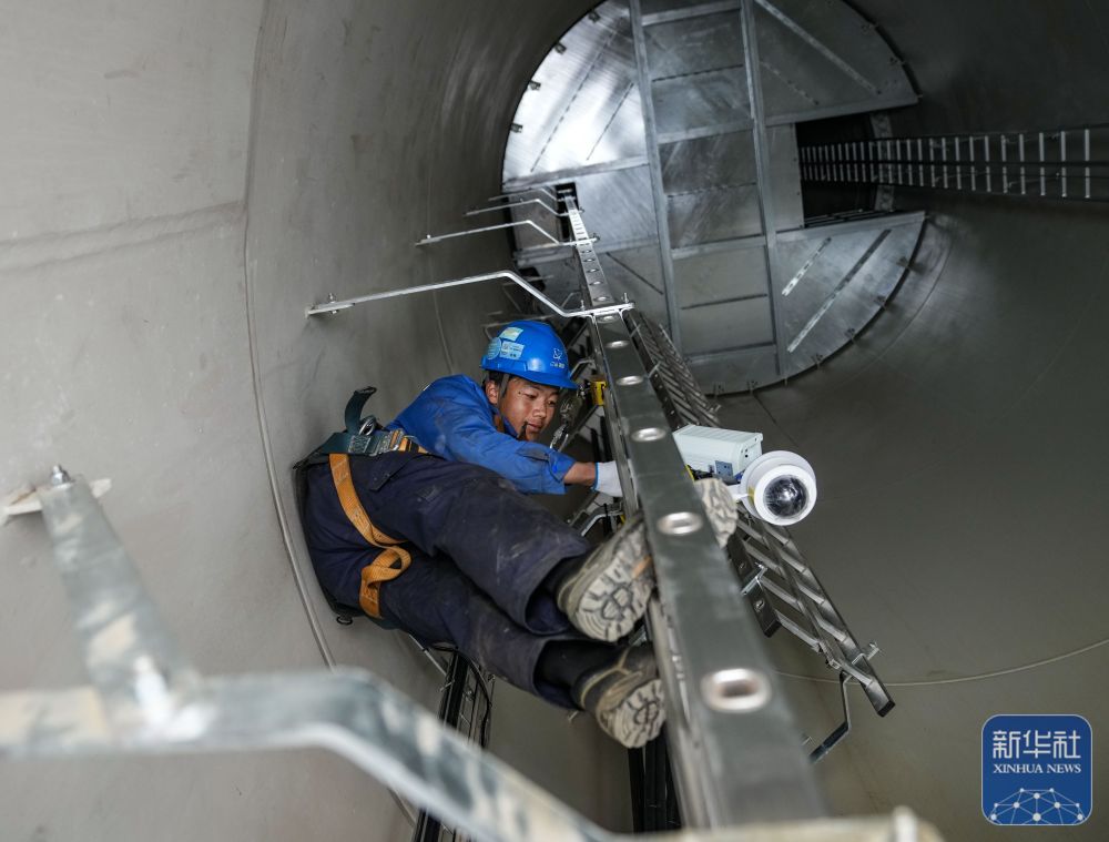 10月17日,工作人員在檢修風機內(nèi)部的監(jiān)控設(shè)備。