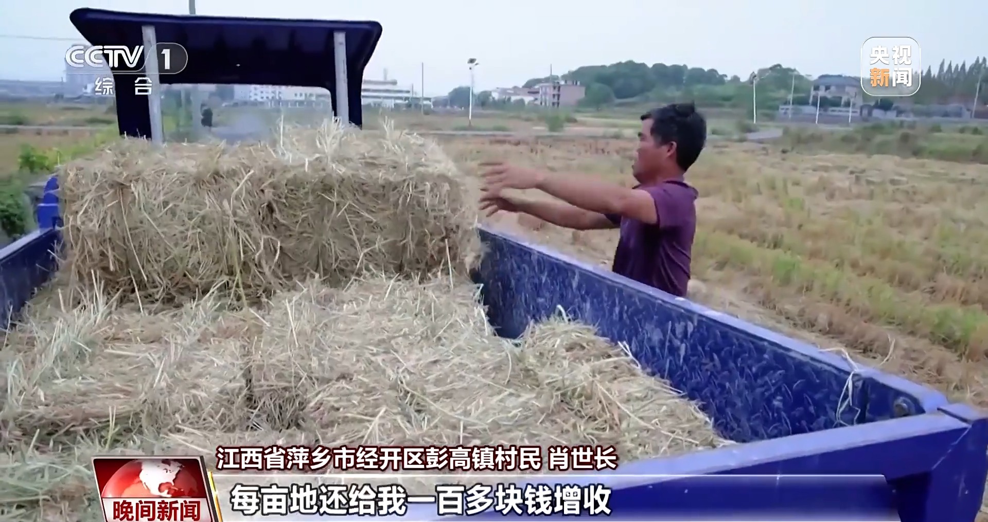 江西省萍鄉(xiāng)市經(jīng)開(kāi)區(qū)彭高鎮(zhèn)村民 肖世長(zhǎng):秸稈處理很麻煩,運(yùn)走還需要自己額外花錢(qián)請(qǐng)人過(guò)來(lái)幫忙?,F(xiàn)在他們上門(mén)回收,每畝地還給我一百多塊錢(qián)增收。