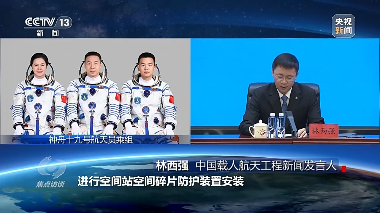 中國(guó)載人航天工程新聞發(fā)言人 林西強(qiáng):此次任務(wù)在空間站駐留約六個(gè)月,開展空間科學(xué)與應(yīng)用實(shí)(試)驗(yàn),實(shí)施航天員出艙活動(dòng)及貨物進(jìn)出艙,進(jìn)行空間站空間碎片防護(hù)裝置安裝,艙外載荷和艙外設(shè)備安裝與回收等任務(wù),開展科普教育和公益活動(dòng)以及空間搭載試驗(yàn)。