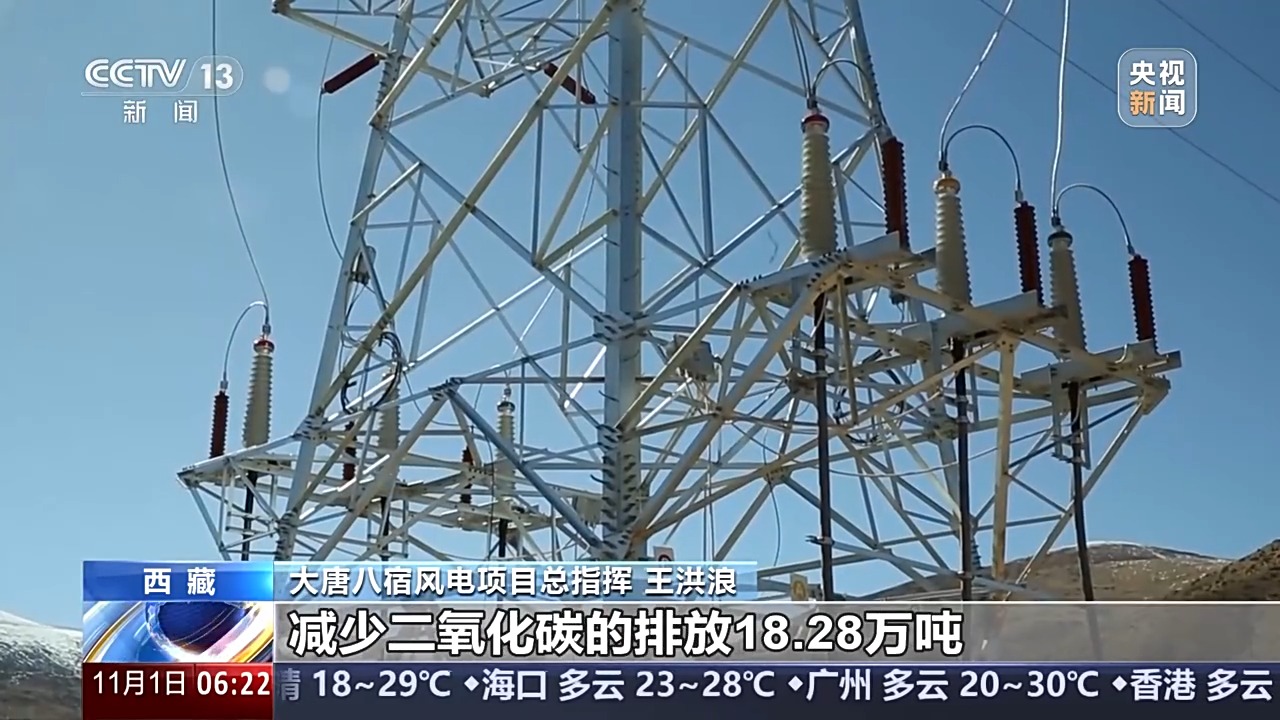 大唐八宿風(fēng)電項(xiàng)目總指揮 王洪浪:項(xiàng)目投產(chǎn)后每年可以新增清潔電力2.23億度以上,可節(jié)約標(biāo)(準(zhǔn))煤約7.31萬噸,減少二氧化碳的排放18.28萬噸。可以滿足23萬人全年生活用電。在保障人民群眾冬季供暖和電力安全供應(yīng)的同時(shí),可有效地改善西藏自治區(qū)的能源結(jié)構(gòu)。