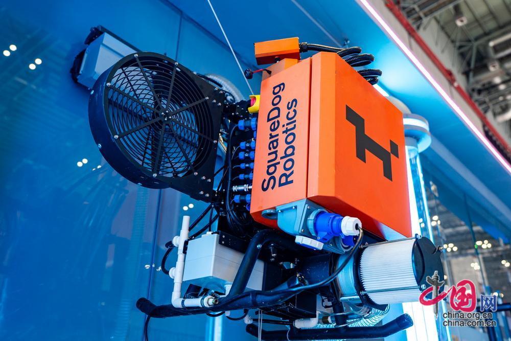 進(jìn)博會(huì)人工智能專區(qū)展示的外墻清潔機(jī)器人。中國網(wǎng)記者