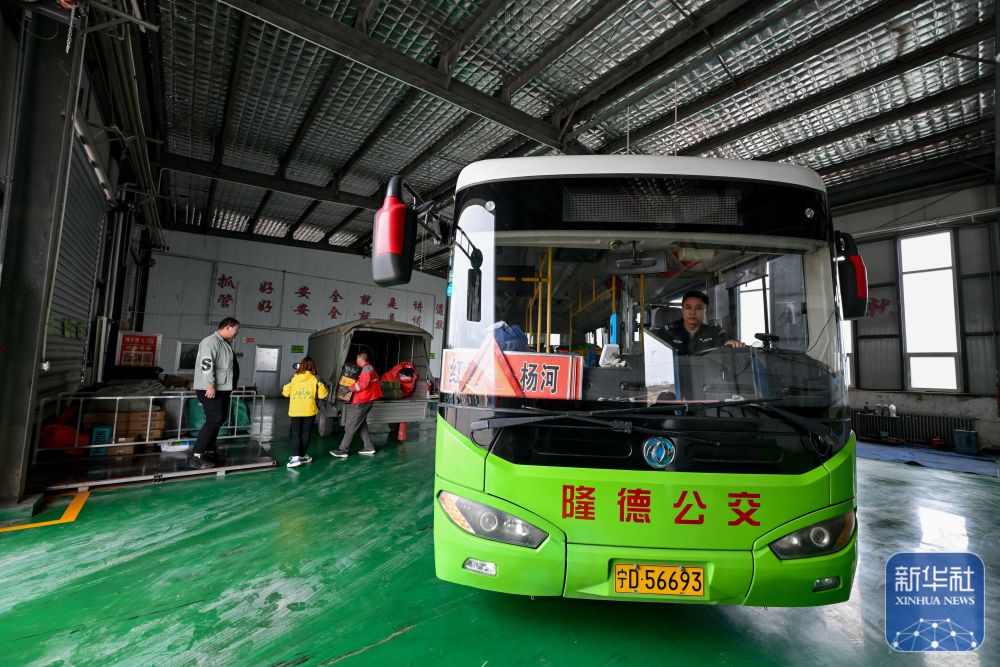 11月9日,一輛載有快遞物品的城鄉(xiāng)公交車(chē)從隆德公交公司倉(cāng)庫(kù)駛出。