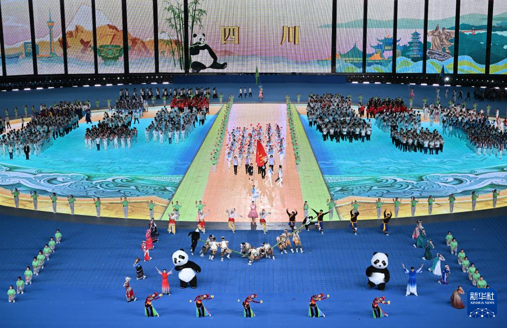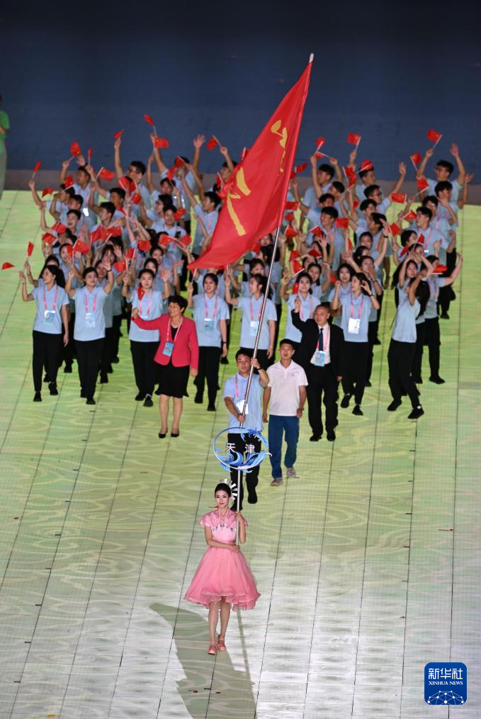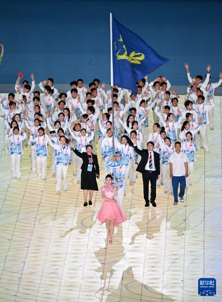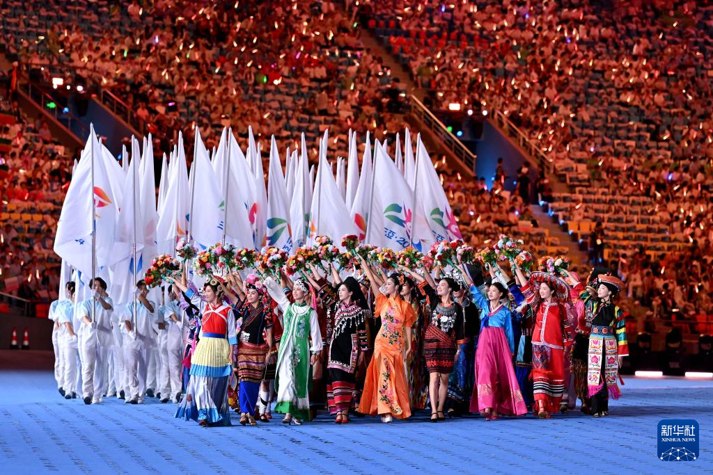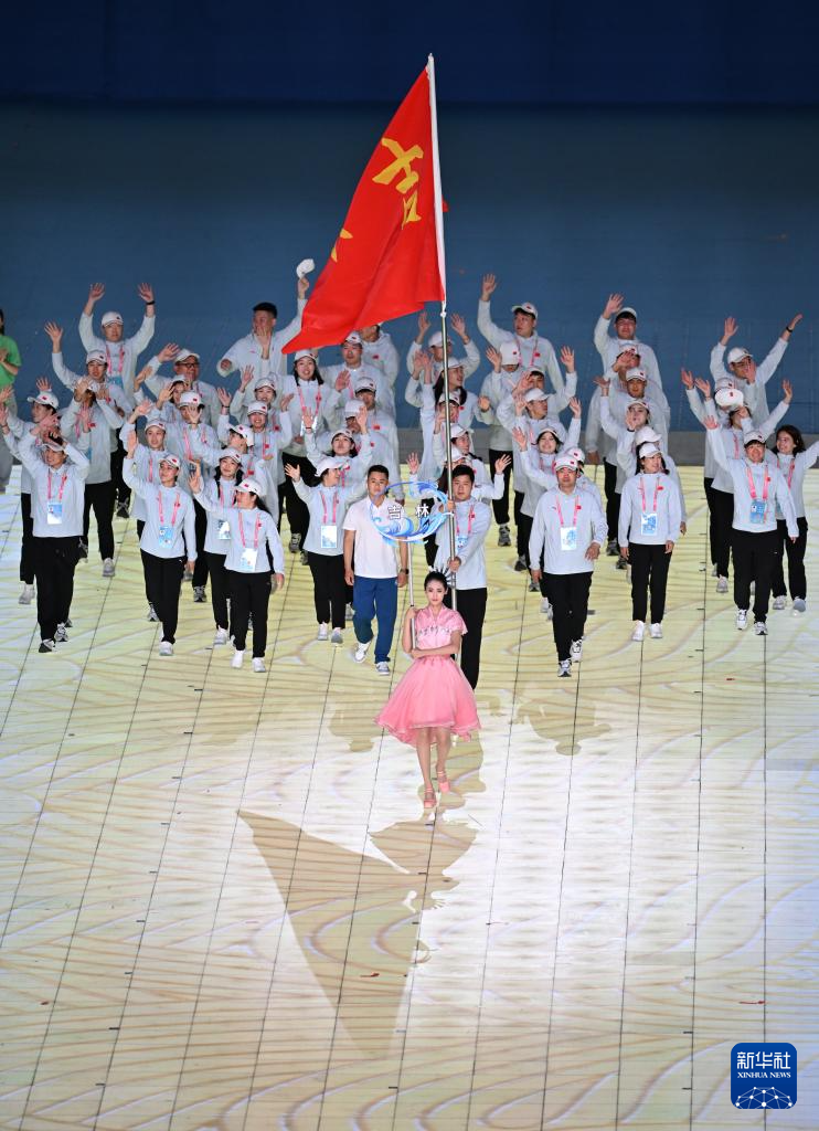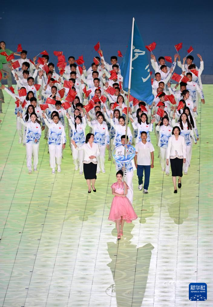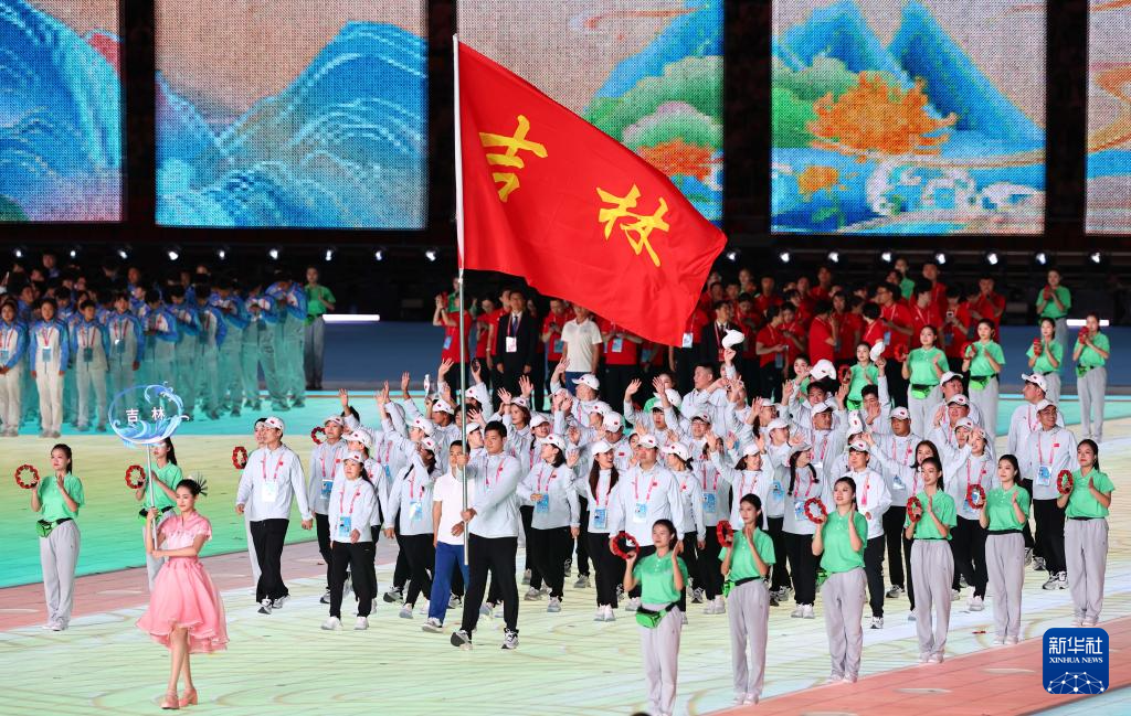 11月22日,中華人民共和國第十二屆少數民族傳統(tǒng)體育運動會會旗方陣在開幕式上入場。