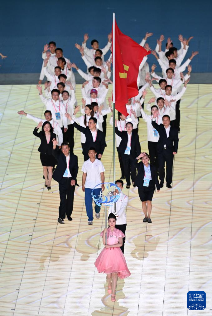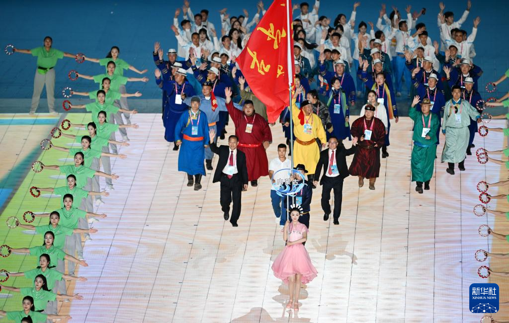 11月22日,中華人民共和國少數民族傳統(tǒng)體育運動會會旗在開幕式上入場。
