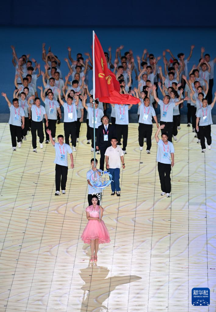 11月22日,中華人民共和國第十二屆少數民族傳統(tǒng)體育運動會會旗方隊在開幕式上入場。
