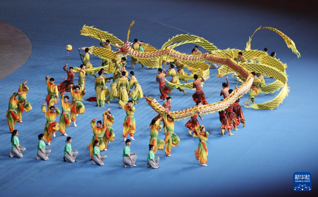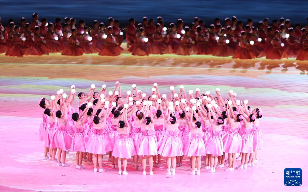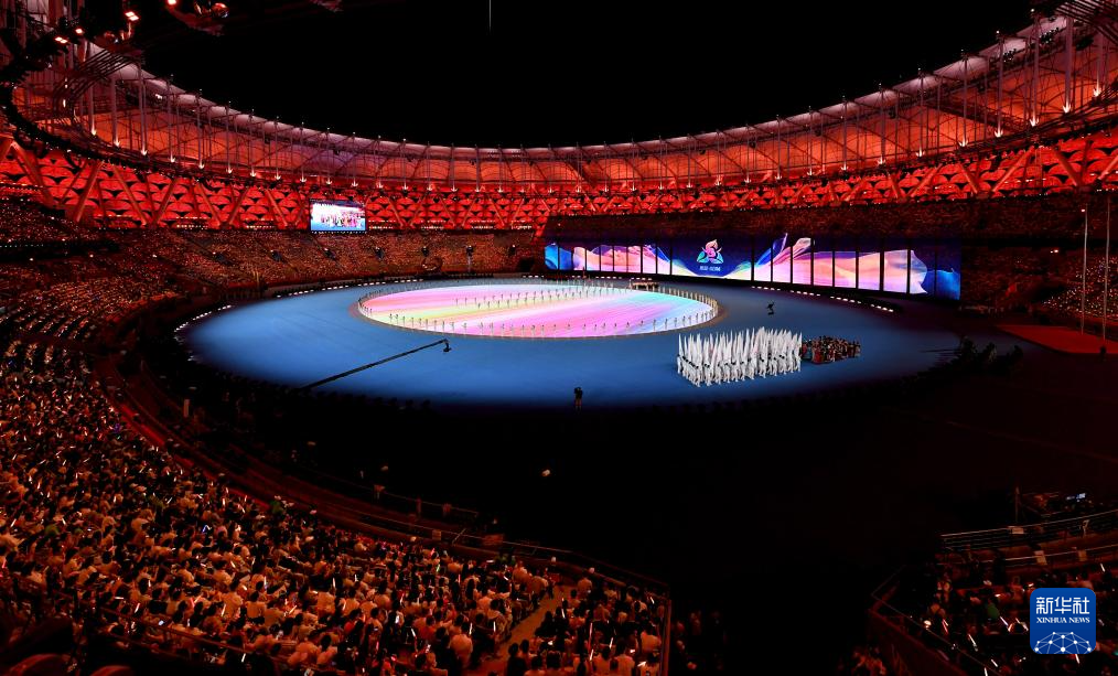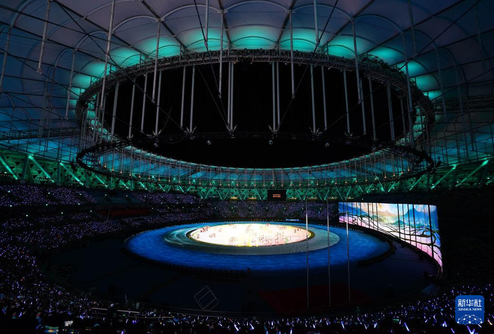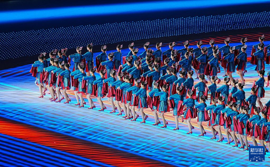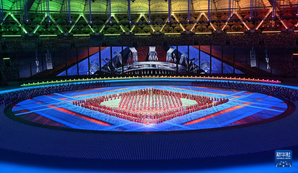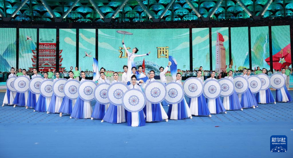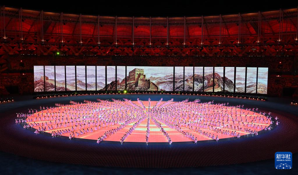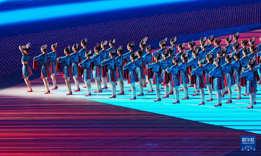 11月22日,開幕式現(xiàn)場升起中華人民共和國國旗、中華人民共和國少數民族傳統(tǒng)體育運動會會旗和中華人民共和國第十二屆少數民族傳統(tǒng)體育運動會會旗。