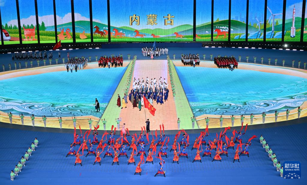 11月22日,內蒙古自治區(qū)代表團在開幕式上入場。