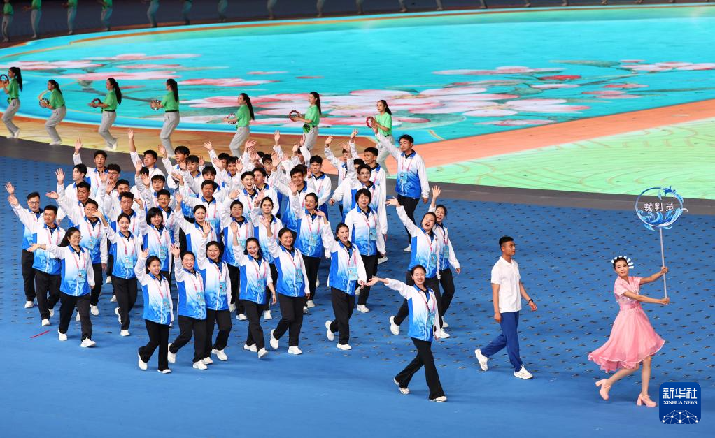 11月22日,廣西壯族自治區(qū)代表團在開幕式上入場。