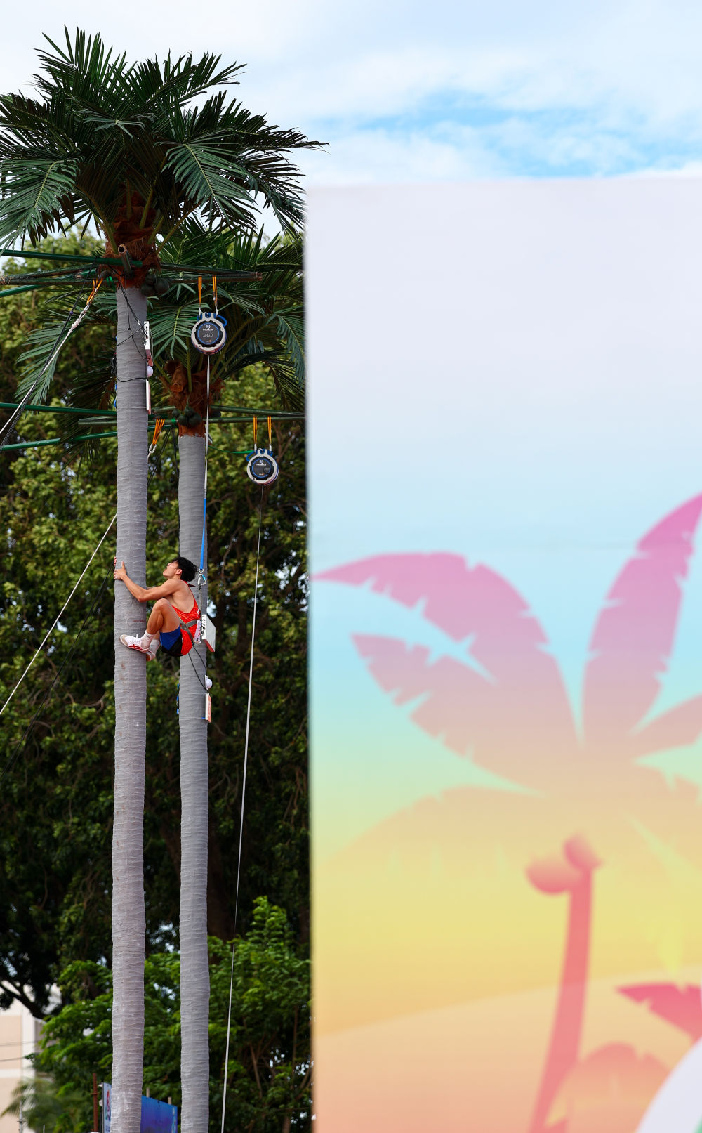 比賽對于海南攀椰競速隊的朱夢丹有著別樣的意義,小時候經(jīng)常爬檳榔樹和椰子樹的她對這項運(yùn)動天然地感到親切。在14歲的時候,她就隨隊參加了第十二屆全國少數(shù)民族傳統(tǒng)體育運(yùn)動會攀椰競速測試賽,以及海南省第七屆少數(shù)民族傳統(tǒng)體育運(yùn)動會,都獲得了二等獎的好成績。