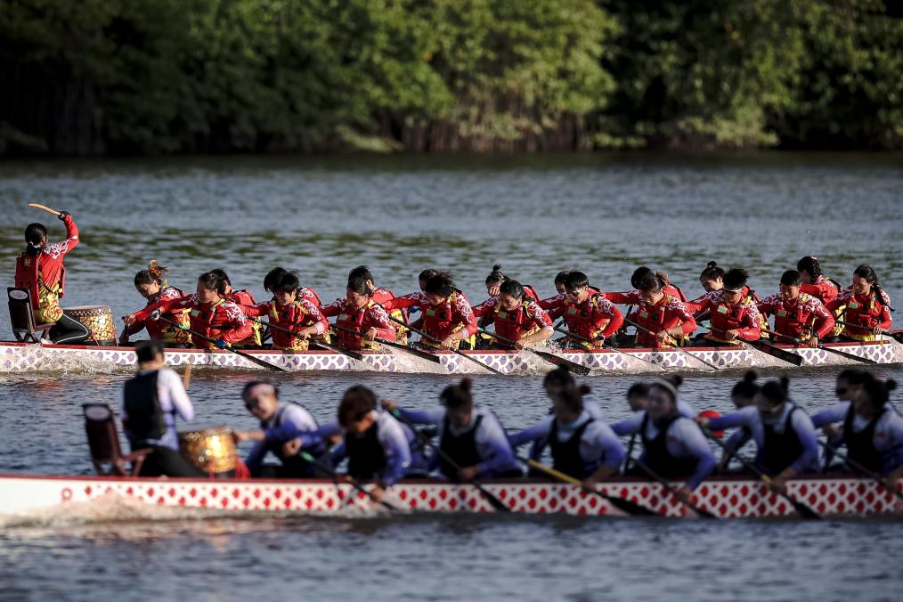 當天還進行了龍舟項目的多場決賽,廣東隊曾德林奪得標準龍舟混合直道競速200米一等獎。曾多次斬獲國際龍舟賽事冠軍的他表示,在三亞這些天就像參加一場全民族的家庭聚會,與其他隊伍也會相互加油、打氣,比賽氛而融洽。