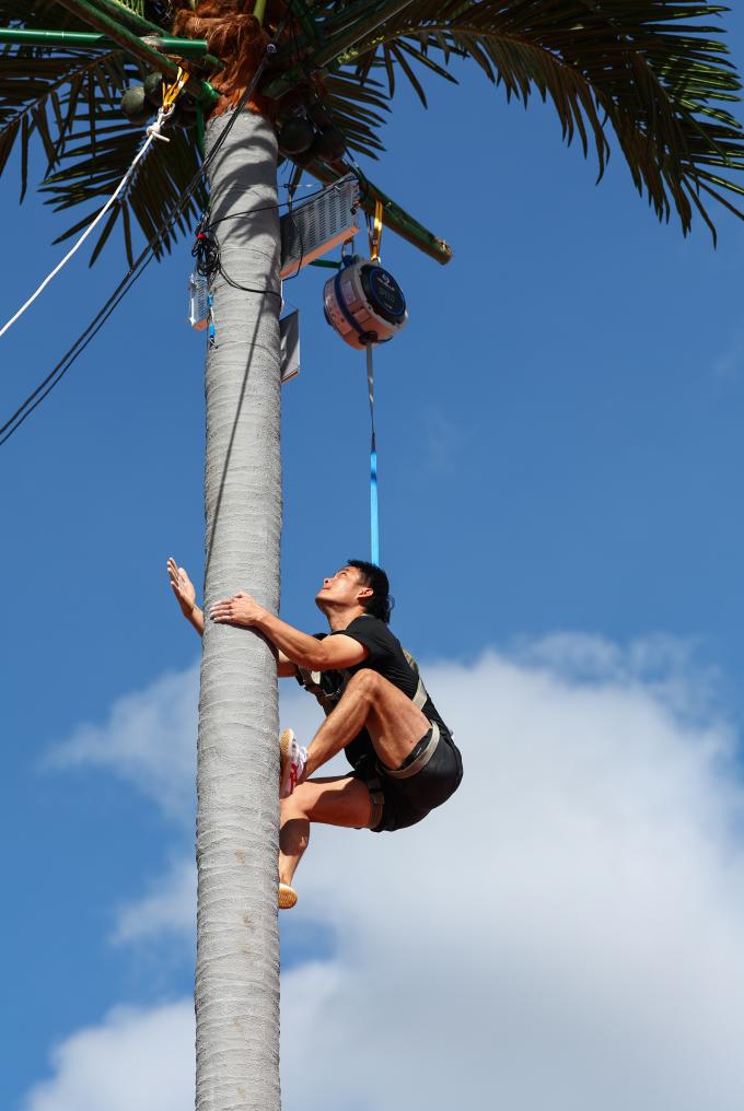 這項起源于海南群眾摘椰勞作的比賽既像沒有巖點的速度攀巖,又像垂直騰躍的跑酷。比賽中,運動員在9米(女子7米)的人造椰樹上攀爬,“樹干”筆直,六七秒之間便已決出勝負,扣人心弦的比賽令觀眾發(fā)出潮水般的歡呼。