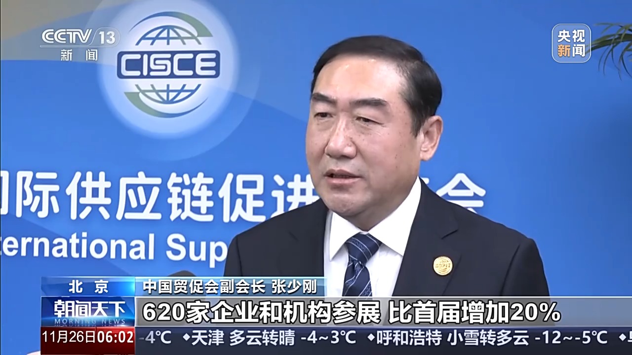 中國(guó)貿(mào)促會(huì)副會(huì)長(zhǎng) 張少剛:今年第二屆鏈博會(huì)共有620家企業(yè)和機(jī)構(gòu)參展,比首屆增加20%,境外參展商占比從首屆的26%提升到32%,這充分說明國(guó)際社會(huì)對(duì)產(chǎn)業(yè)鏈供應(yīng)鏈合作的迫切期待,也說明各國(guó)企業(yè)對(duì)中國(guó)發(fā)展的信任、對(duì)鏈博會(huì)的信任。