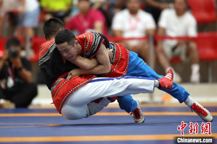 就在3、4秒的電光石火間,一場比賽就定下勝負(fù)。正在海南省三亞市進行的第十二屆全國少數(shù)民族傳統(tǒng)體育運動會(下稱“運動會”)上,民族式摔跤激烈進行,展示力量與智慧的較量。