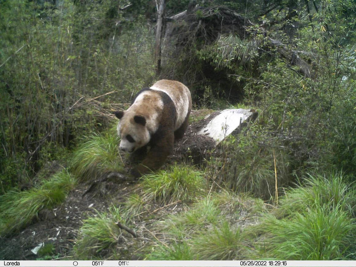 這是大熊貓國家公園唐家河片區(qū)白熊坪區(qū)域的一臺紅外相機(jī)拍攝到的野生大熊貓畫面(2022年5月26日攝)。新華社發(fā)(大熊貓國家公園唐家河片區(qū)供圖)