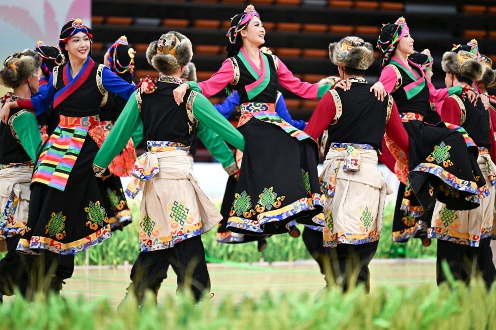 第十二屆全國(guó)少數(shù)民族傳統(tǒng)體育運(yùn)動(dòng)會(huì)表演項(xiàng)目,四川隊(duì)選手表演《田間戲棋》
