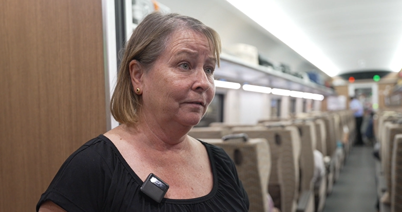黃復勝:“我感覺坐了這個火車,覺得很舒服,然后很快就可以進火車,check in(進站)和 check out(出站)都是很方便的?!?/p>