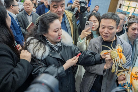 外國(guó)記者一邊查看青蟹一邊密集提問
