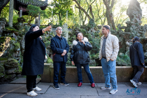 天一閣作為中國(guó)現(xiàn)存最古老的私人藏書樓之一,深深吸引了外國(guó)記者的注意。天一閣內(nèi)保存了豐富的古籍與文化遺產(chǎn),展現(xiàn)了寧波作為“文化名城”的深厚底蘊(yùn)。講解員向記者們?cè)敿?xì)地介紹了天一閣的歷史背景和文化價(jià)值,講述了“書藏古今、港通天下”的文化內(nèi)涵,使記者們對(duì)寧波的文化歷史有了更深的理解。