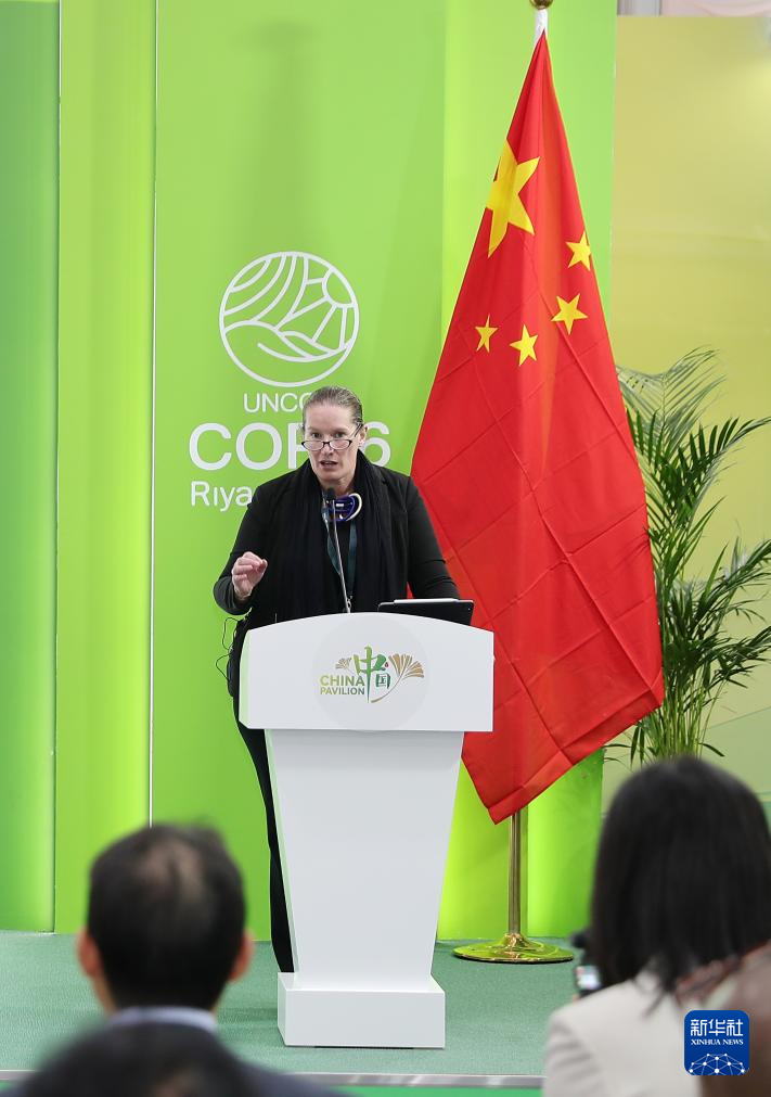 12月4日,在沙特阿拉伯利雅得,世界銀行全球環(huán)境局局長瓦萊麗·?;凇堵?lián)合國防治荒漠化公約》第十六次締約方大會(COP16)中國館舉辦的邊會上發(fā)言。新華社記者 王東震 攝